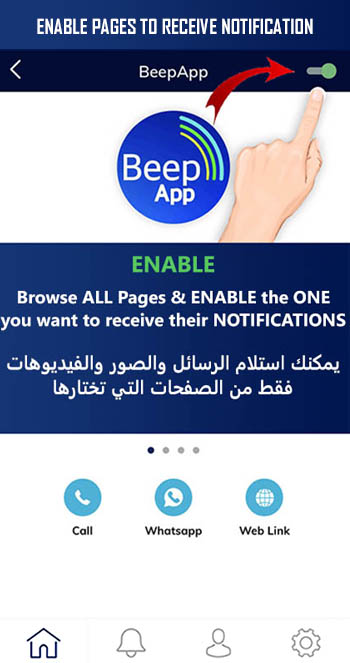 Now you can download BeepApp & access to view registered Pages, You can easily enable any Page icon, in order to receive NOTIFICATIONS. |